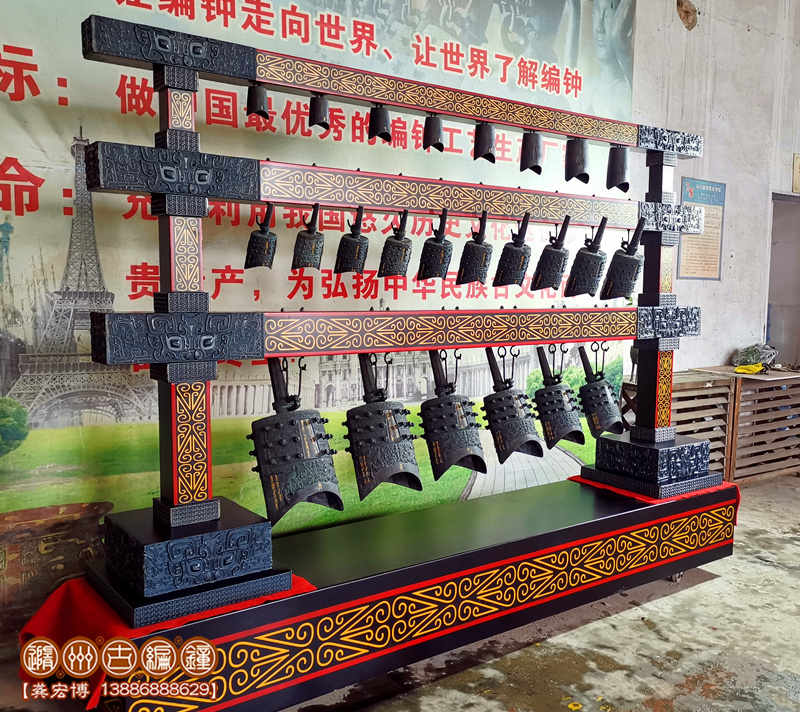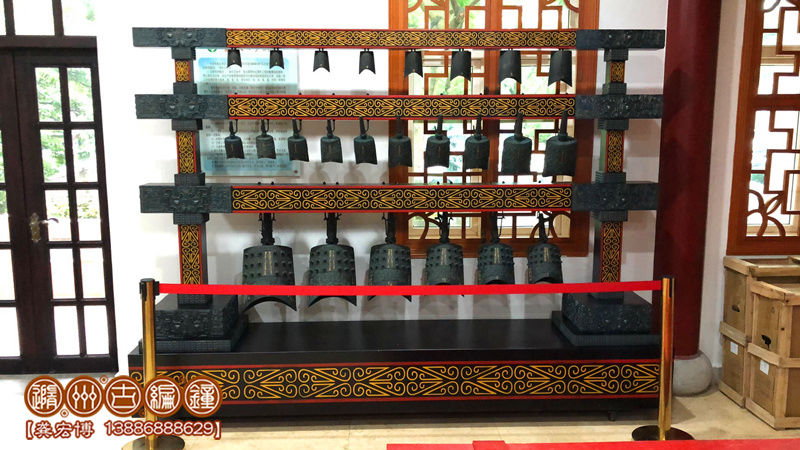 簡介:隨州古編鐘公司按客戶要求定制生產(chǎn)的24件編鐘(南樂歌鐘),編鐘為錫青銅鑄造并按442Hz調(diào)音,分3層懸掛方式排列,音階達(dá)3個半八度,可以演奏古今中外樂曲,可以和任何樂器搭配演奏。