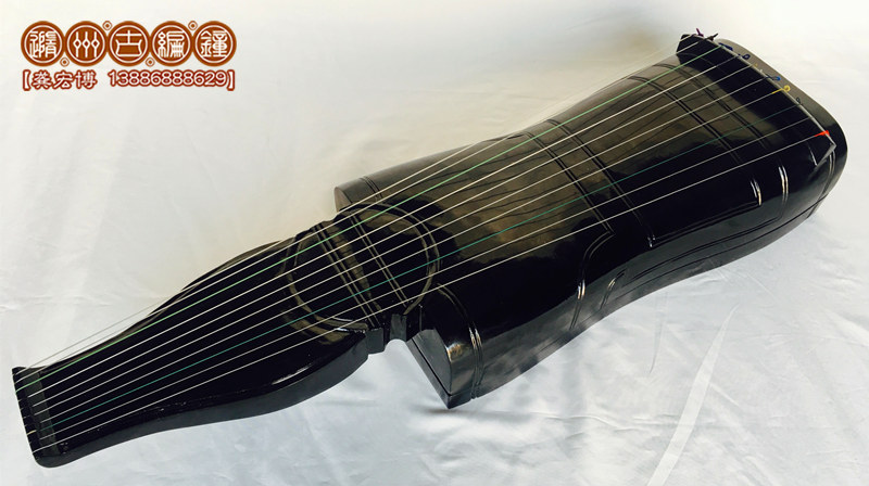弧長(zhǎng)形的尾板微上翹而懸空,尾端上也有勒弦痕跡,板下有栓弦枘。琴面隆起,陰刻弦紋。通體髹黑漆,光澤柔潤(rùn)。素面。出土?xí)r底板淺槽內(nèi)存琴軫四枚。此琴系首次發(fā)現(xiàn),因張施十弦而暫名十弦琴。