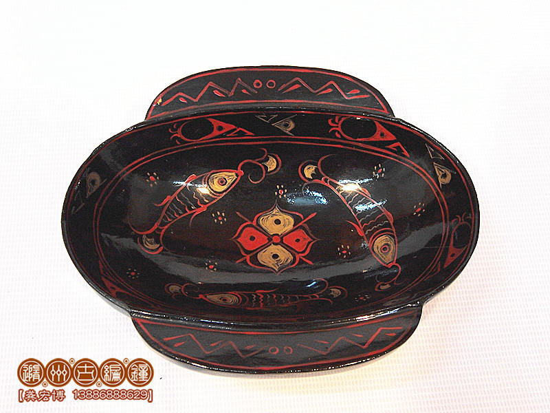 耳杯造型為器口元寶形,小耳,淺腹,平底,往往以盤承托。耳杯有方形和圓形兩種。自戰(zhàn)國以來,一直經(jīng)久不衰。主要為飲酒器,還與古代“曲水流觴”的活動有關(guān)。據(jù)考,古代習(xí)俗于三月初,為祓除不詳,在水之上游投入盛滿酒的耳杯,任其漂流而下,杯受阻則取而飲之。所以耳杯的耳大如羽扇,既利于漂浮,又便于提取。