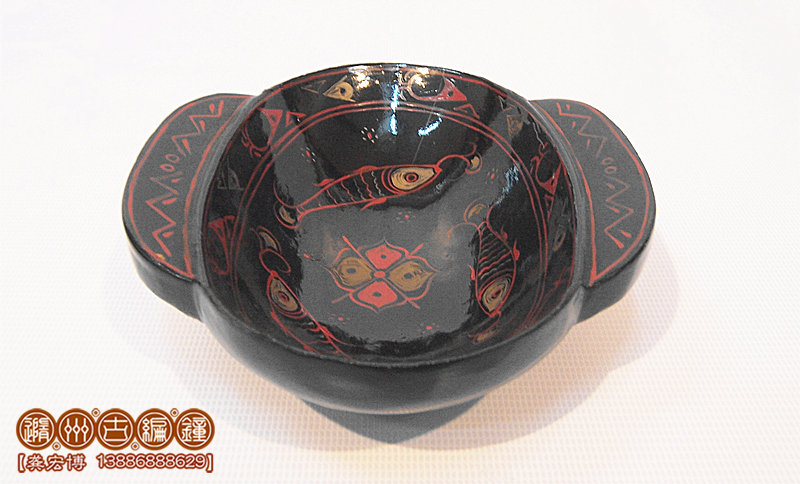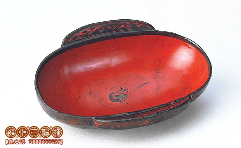 彩繪鳥云紋耳杯做得輕便靈巧,黑紅兩色對比明顯,云紋流動,龍飛鳳舞其中。古人飲宴,必伴以音樂鼓瑟,方能賓主盡興。古人禮儀,以雙手執(zhí)耳杯飲酒,不似今人單手執(zhí)杯。