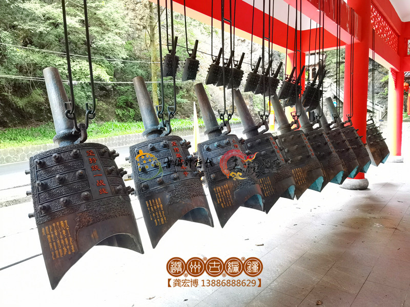 2023年7月,隨州古編鐘公司制作的10件大型曾侯乙甬鐘及一組旋律編鐘,在堯治河旅游景區(qū)完成安裝工作。當(dāng)悠悠鐘聲回蕩山谷時(shí),它那古樸渾厚的樂音,激蕩起人民對(duì)黨的赤誠(chéng)忠心,又仿佛在訴說革命先輩對(duì)未來的期望。這次將編鐘作為文化的載體,展現(xiàn)了中華歷史的厚重和新時(shí)代征程的拓印,這份紀(jì)念豐富了景區(qū)的文化內(nèi)涵,映襯了自然景色,讓游客在旅途中感受山水古樂的酣暢淋漓。